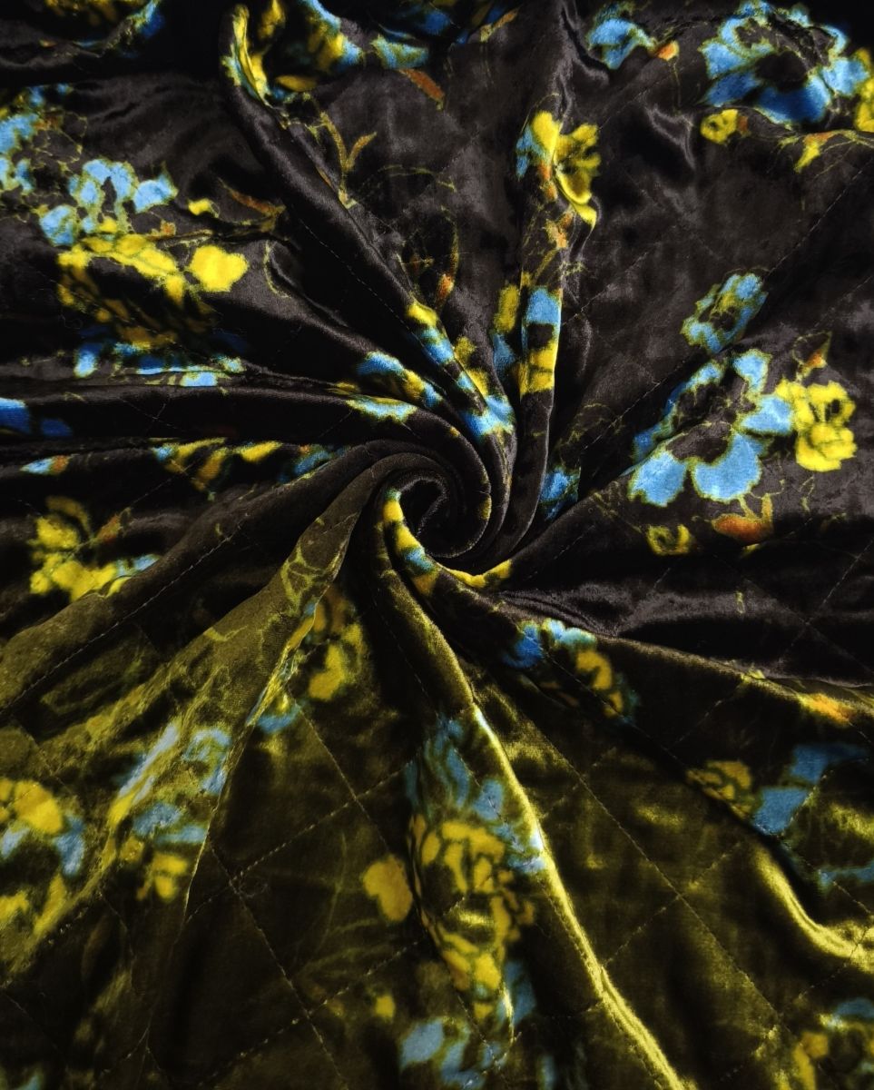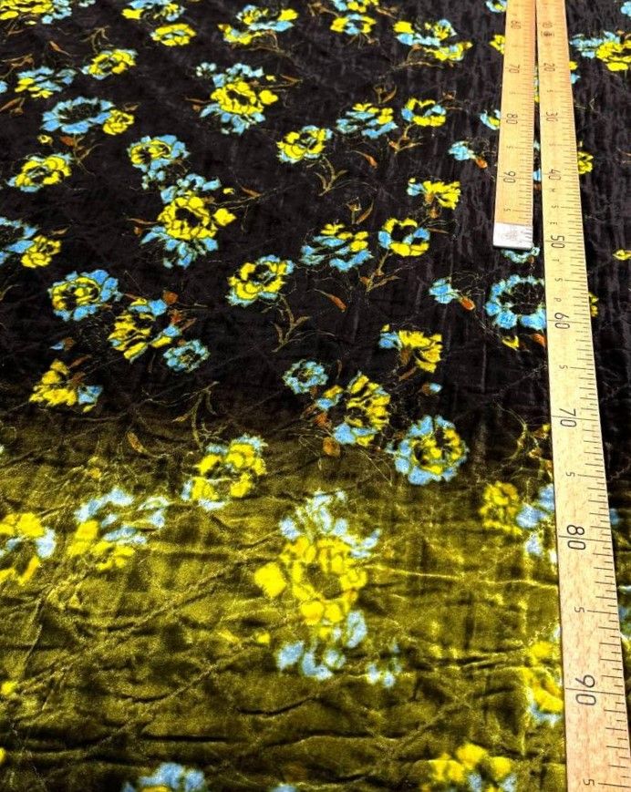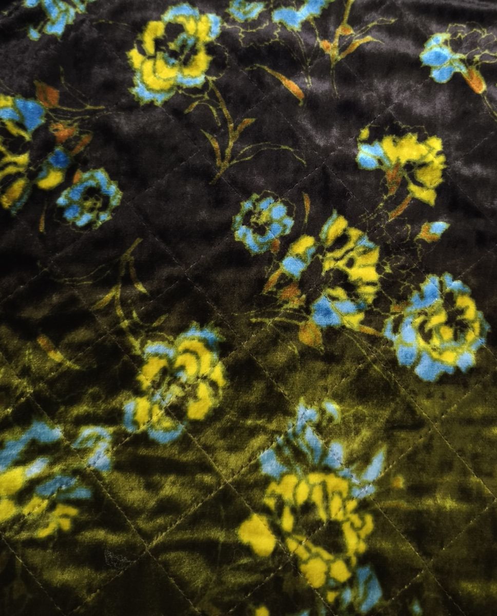 Бархат стежка ARMANI купон зелено-шоколадный с цветами. Высота купона 1,50 м.