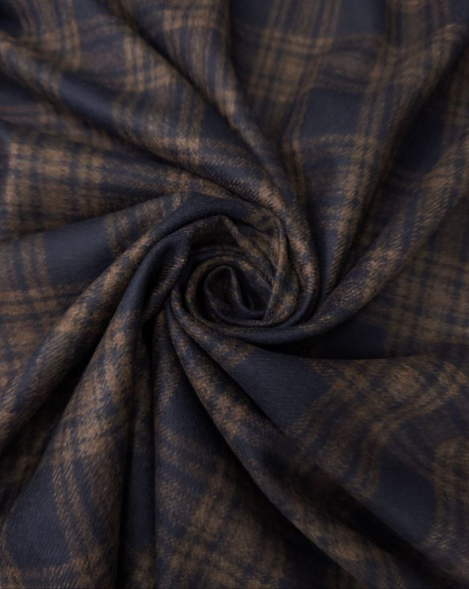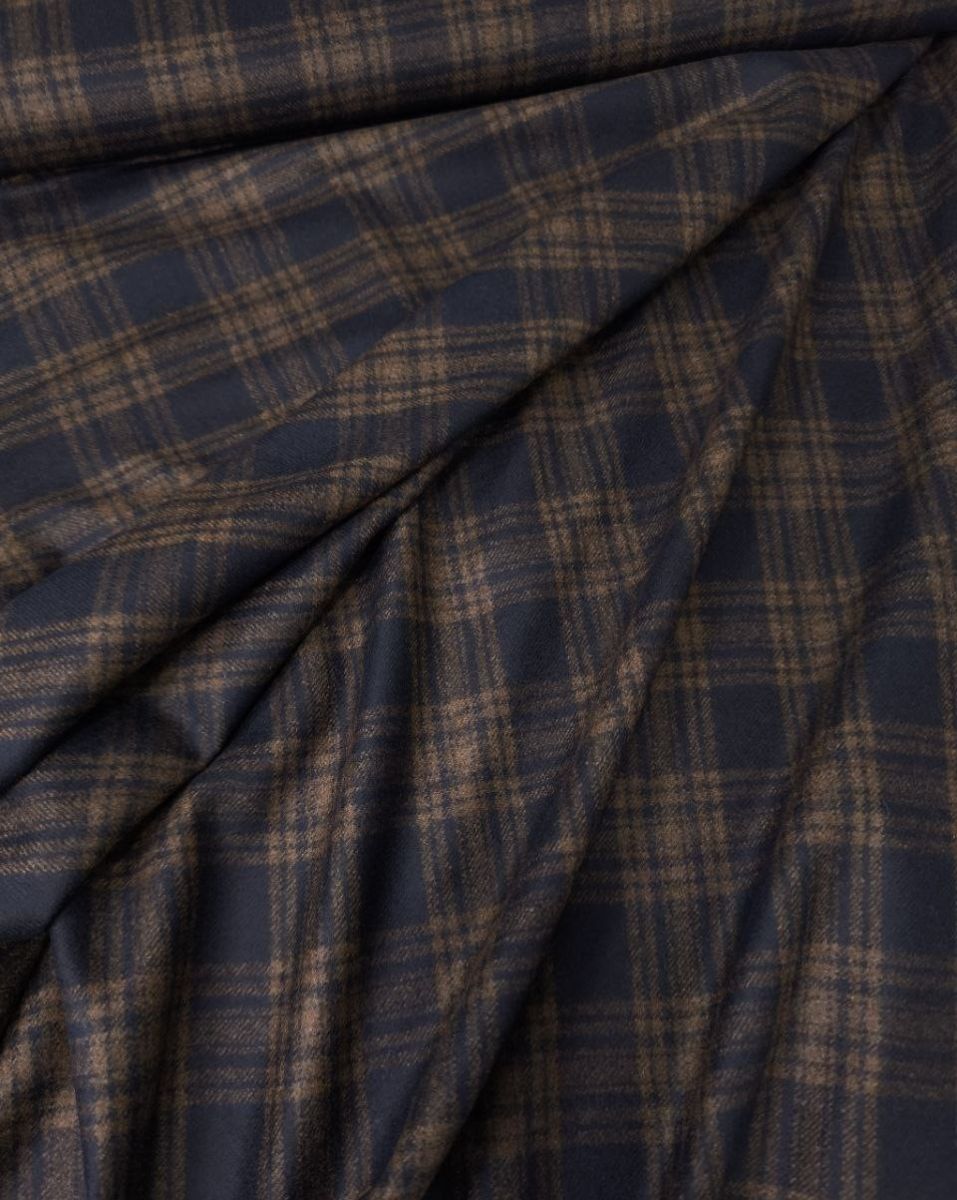 Фланель сине-коричневая клетка L.PIANA. Ткань костюмно-плательной плотности, мягкая, не колючая, не мнется, пластичная, тактильно шелковистая. Клетка 11х13 см.