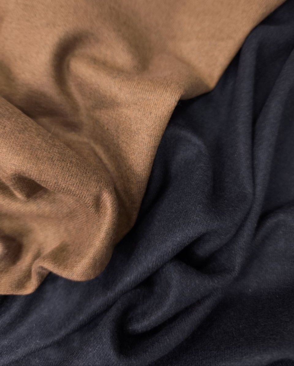 Кашемир 2-х сторонний кэмел с темно-синим L.Piana. Ткань костюмно-плательной плотности, мягкая, пластичная.