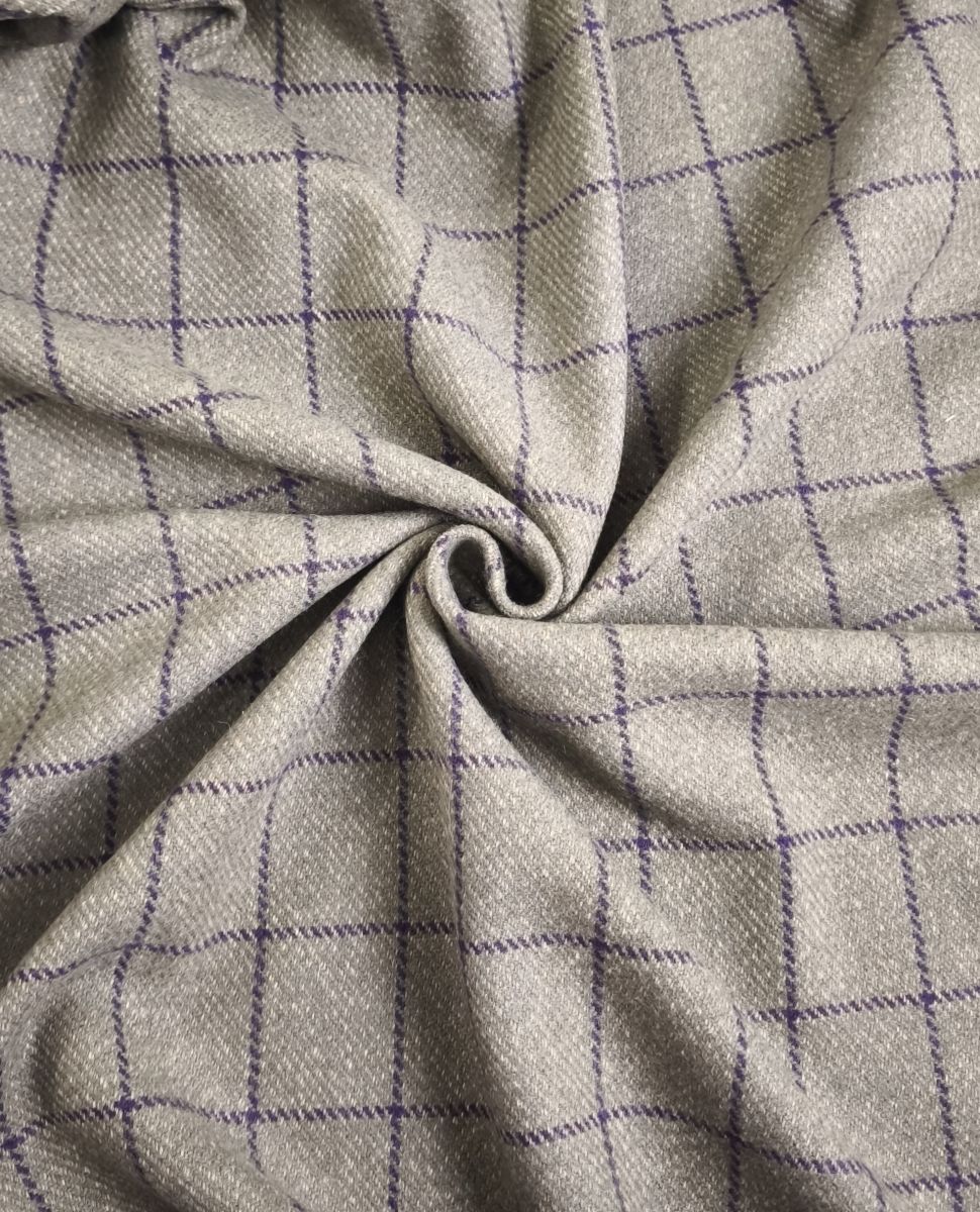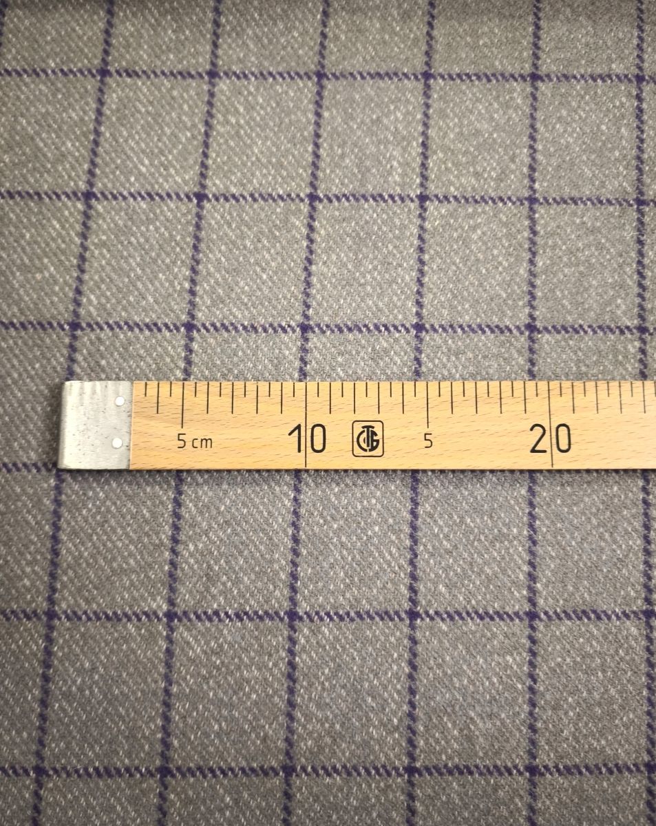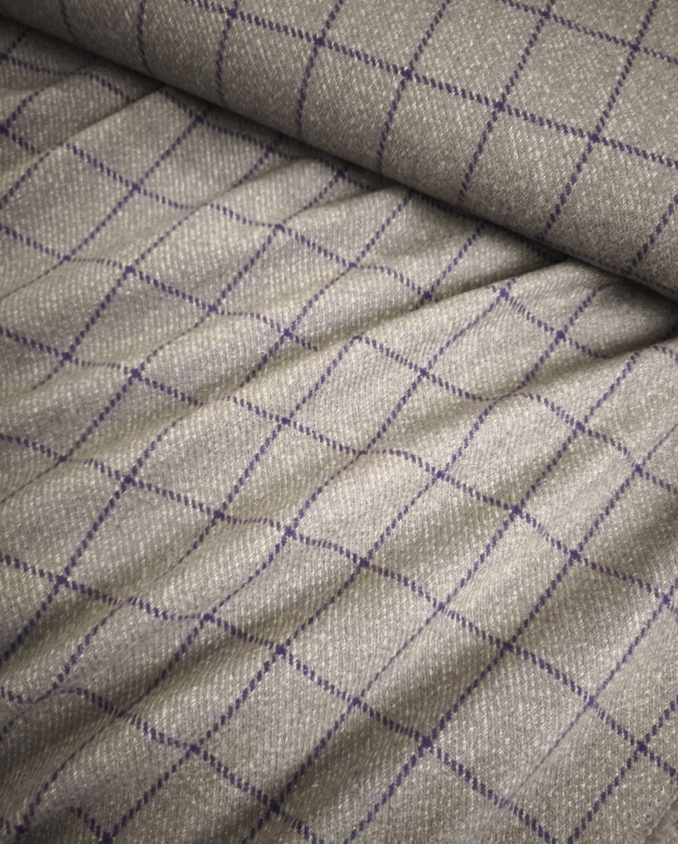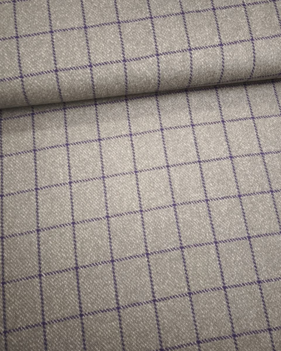 Костюмная бежевая в фиолетовую клетку. Клетка вытянутой формы 5х6 см.