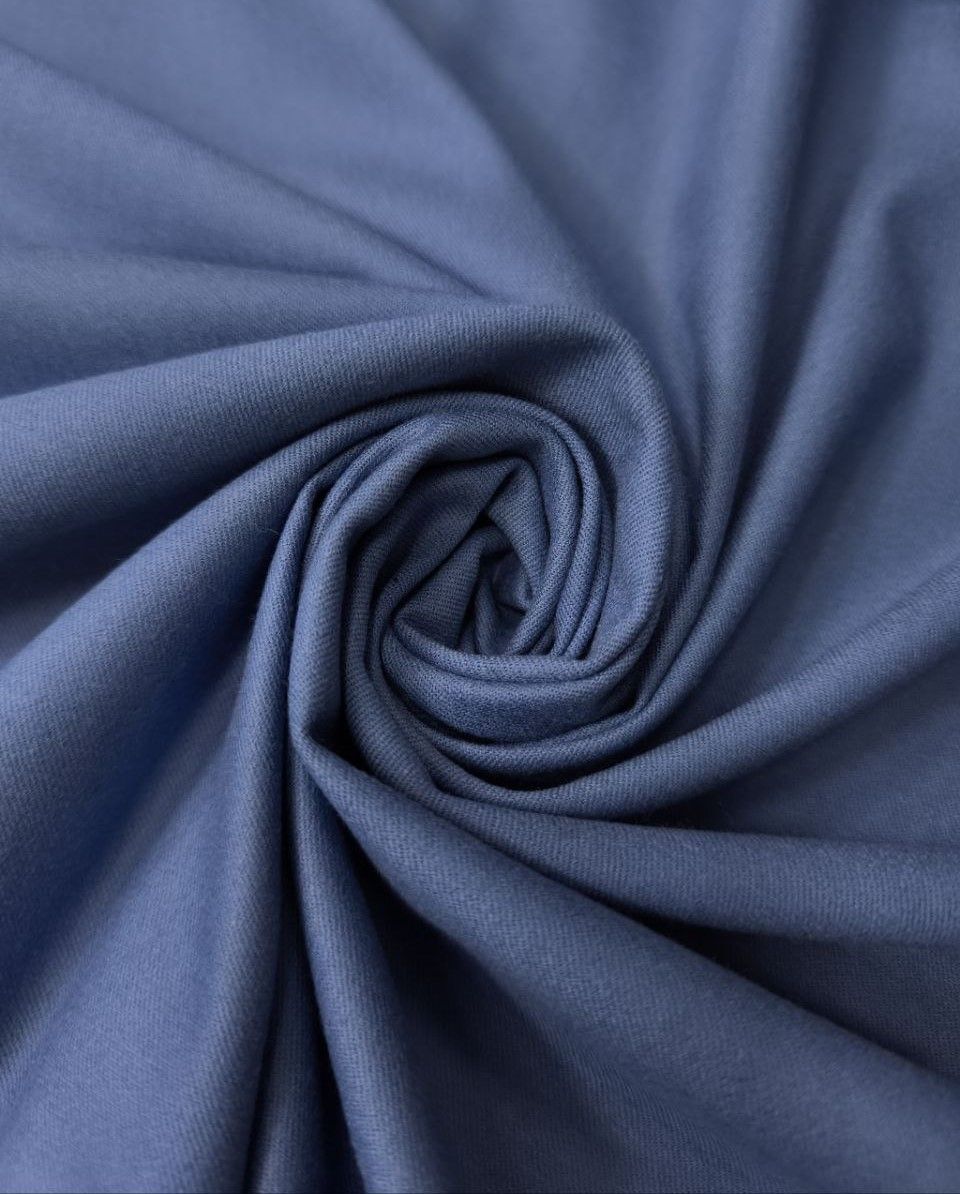 Костюмная фланель голубая. Ткань мягкая, пластичная, хорошо тянется.