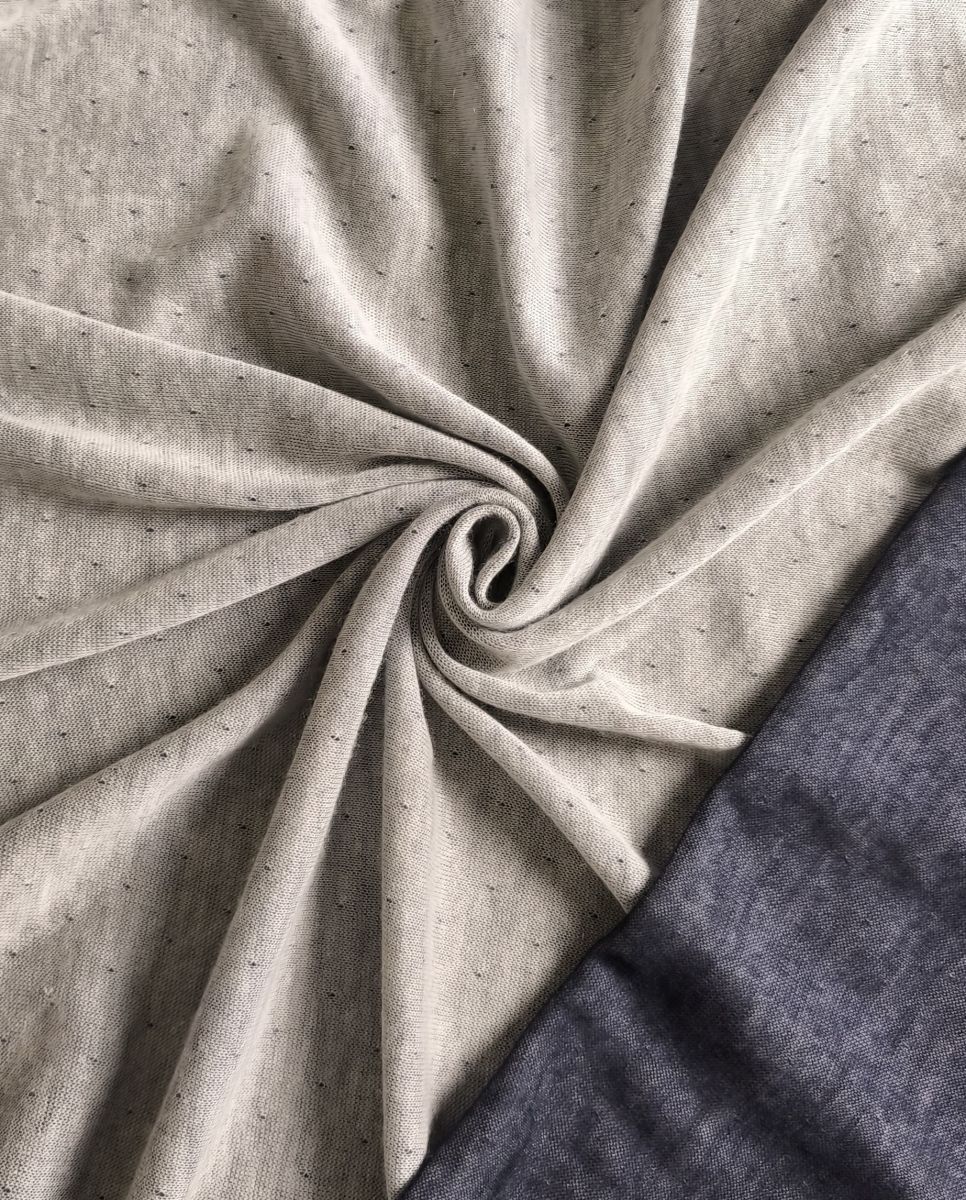 Перфорированный трикотаж сине-серый.