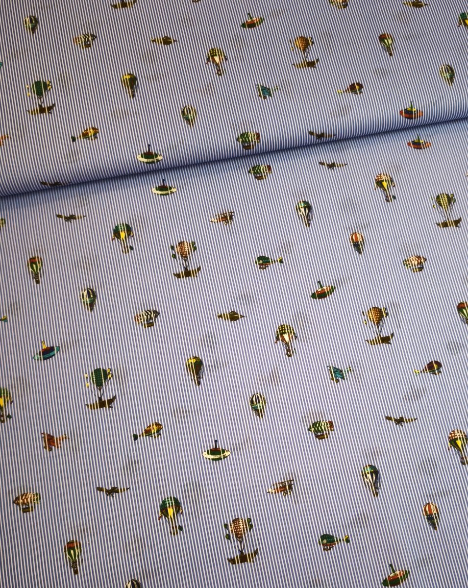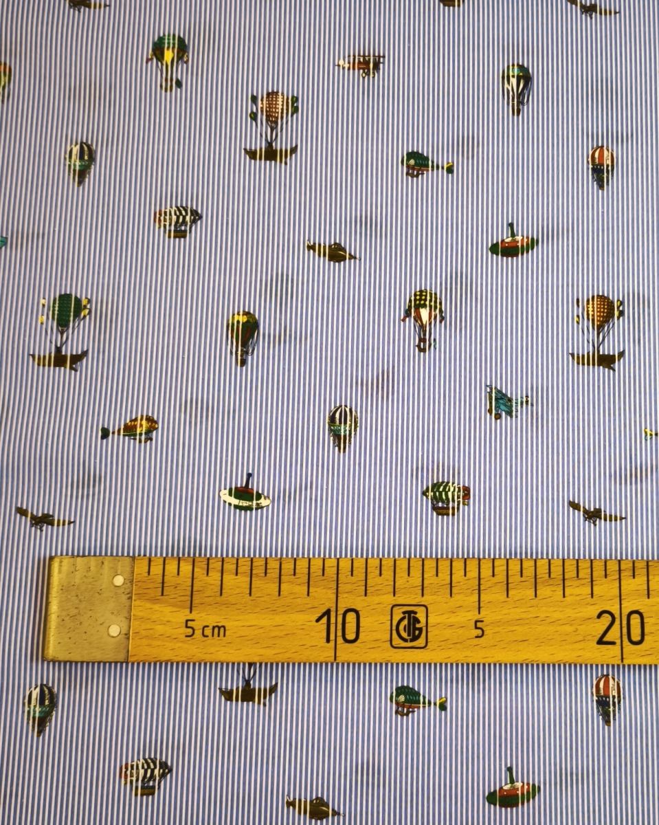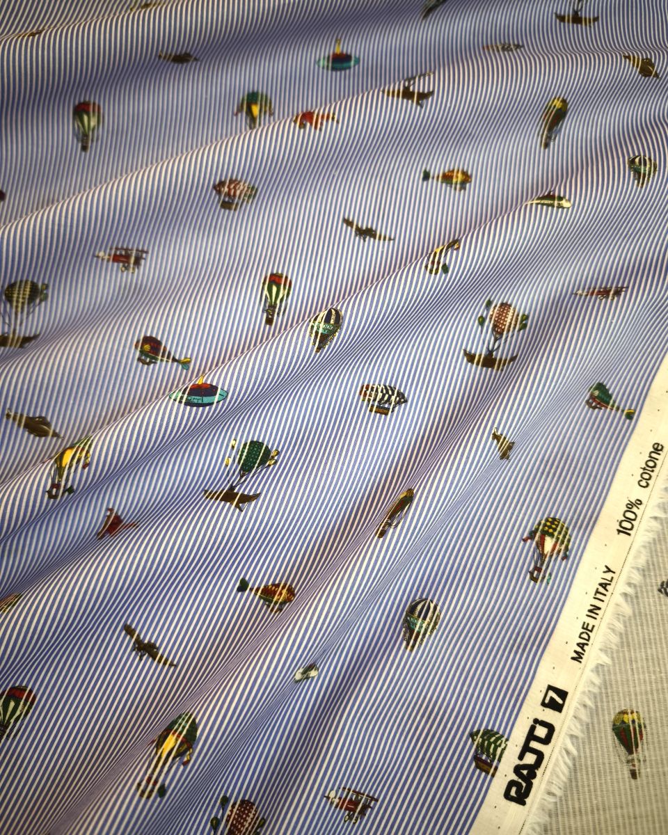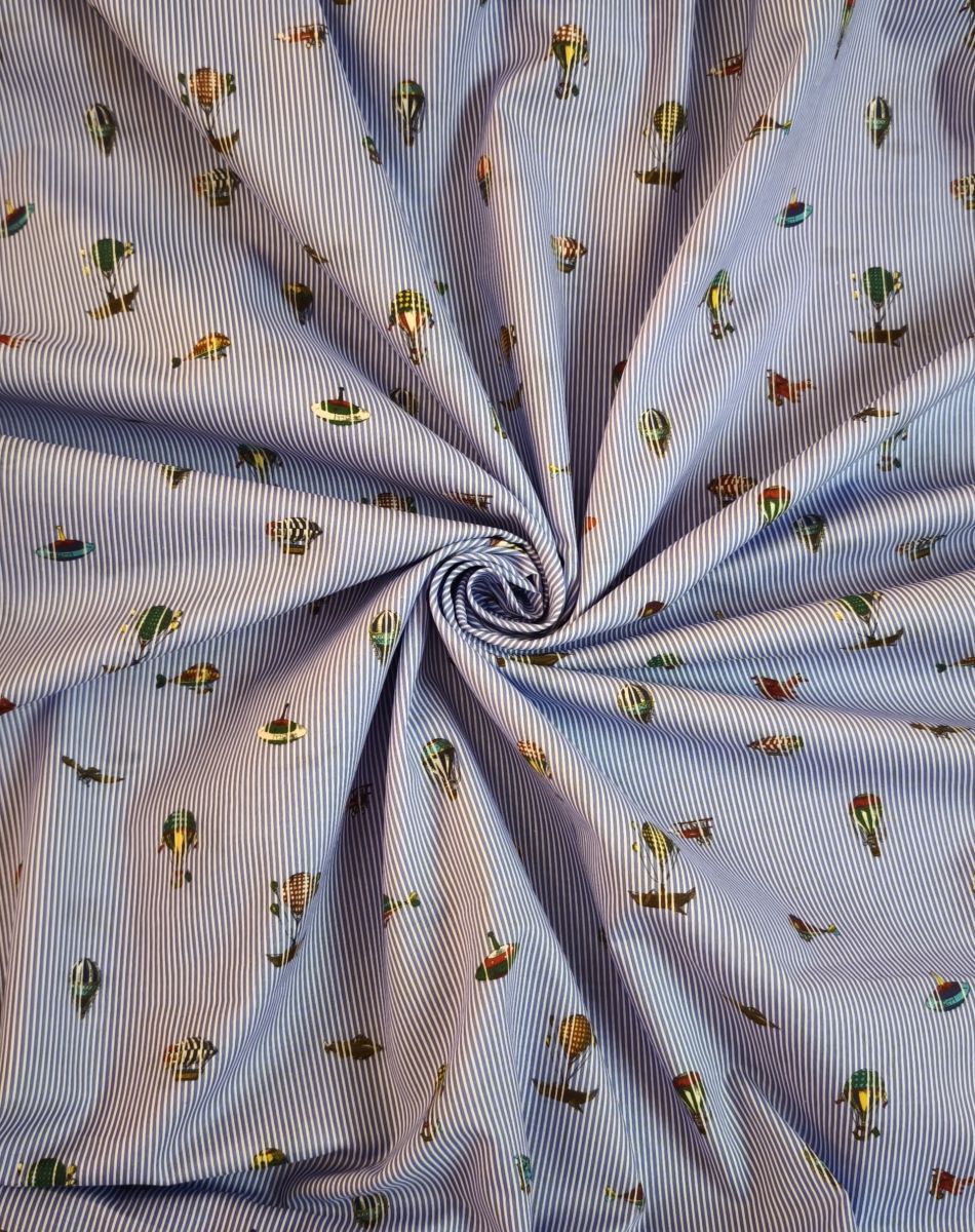 Поплин RATTI белый в голубую полоску с летательными аппаратами