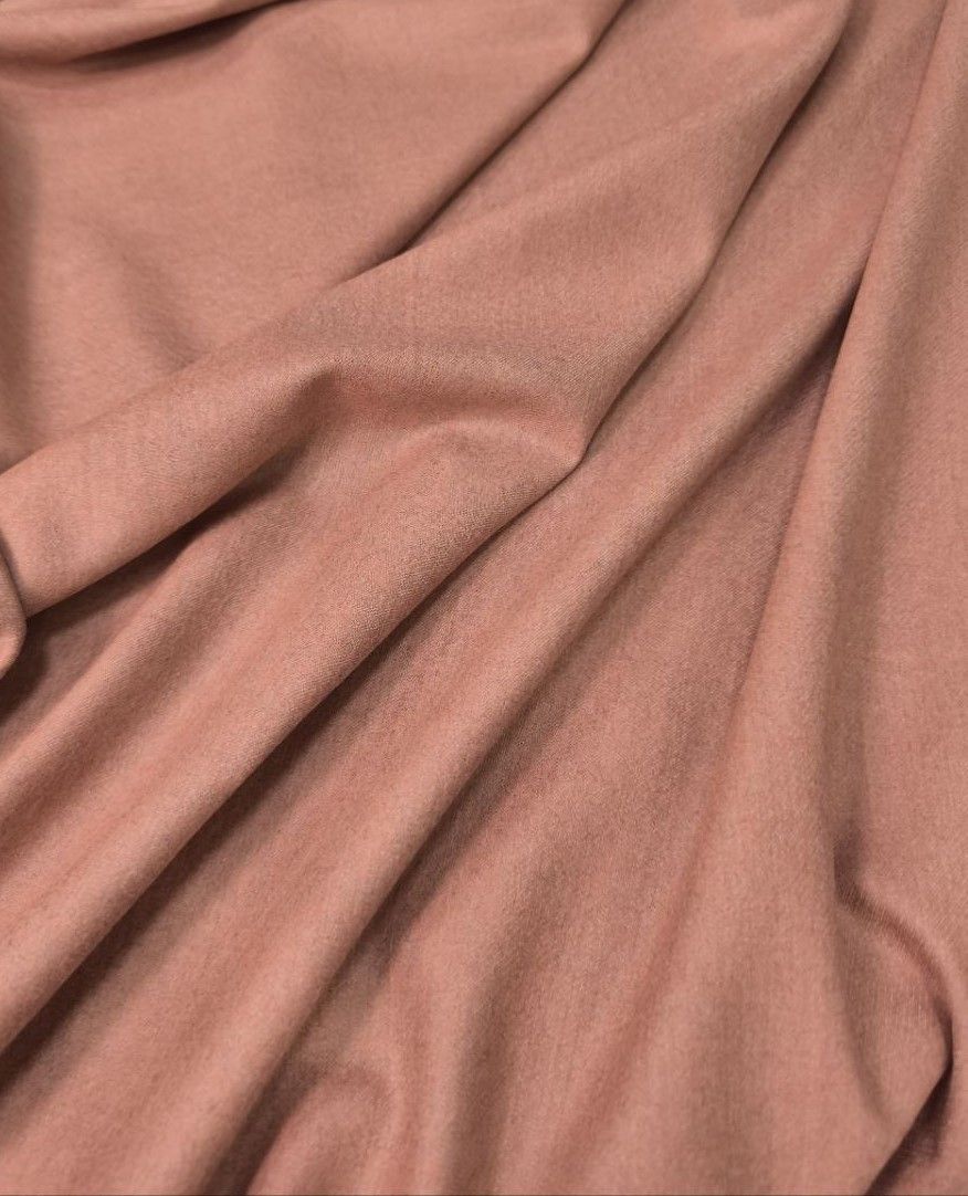 Шерстяная фланель в оттенке пыльной розы. Ткань средней плотности, пластичная, хорошо тянется.