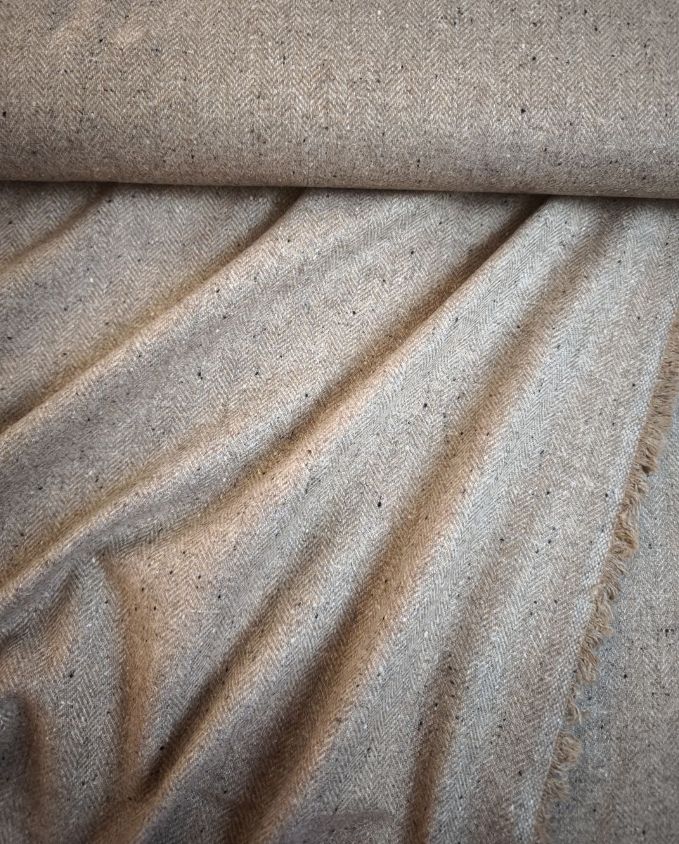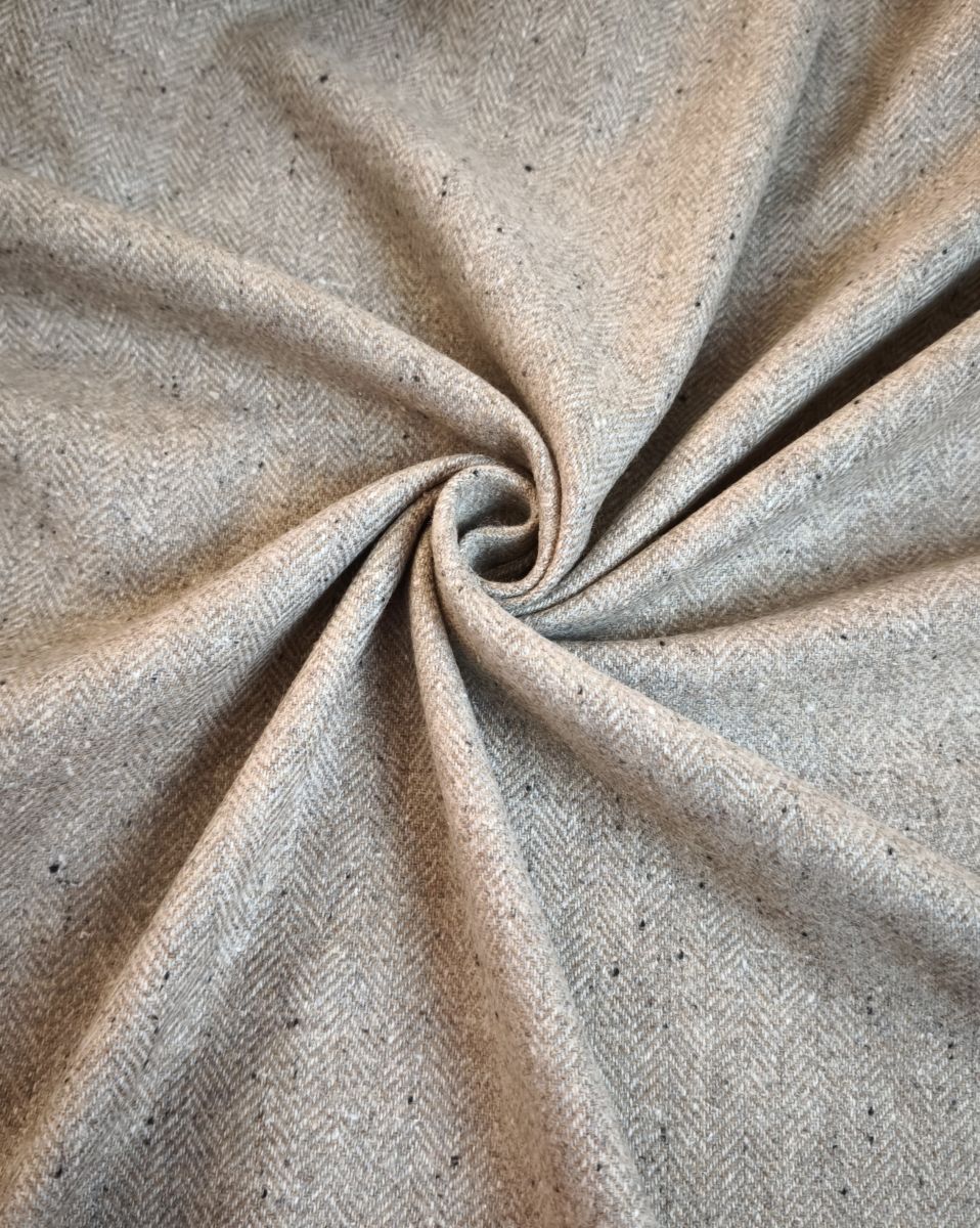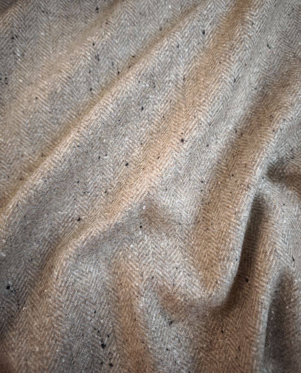 Твид песочно-бежевая елочка с черными вкраплениями.